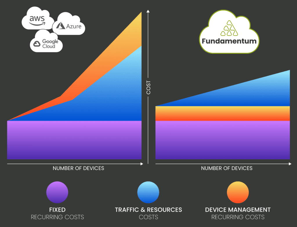 This linear and predictable pricing structure allows for better cost management, eliminating surprises and enabling you to plan and budget effectively. By selecting the most cost-effective infrastructure for your specific use case, Fundamentum provides a scalable and efficient solution for your IoT deployments, optimizing your investment while delivering predictable and manageable costs.